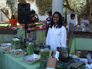 We launched the Olive Harvest Festival around then, which we had for four years in a row. Some students made homemade olive oil with a window screen and a centrifuge. I got Jean-Lou involved, and that led to a 2,000-person event: from the entire Ath long down through the Olive Walk, RF courtyard, and all the way to Thomas-Gates. It was one big dinner table. The oil was terrible that year—full of bugs—so we got creative with fly control. Blind tastings even had students picking canola oil as their favorite!