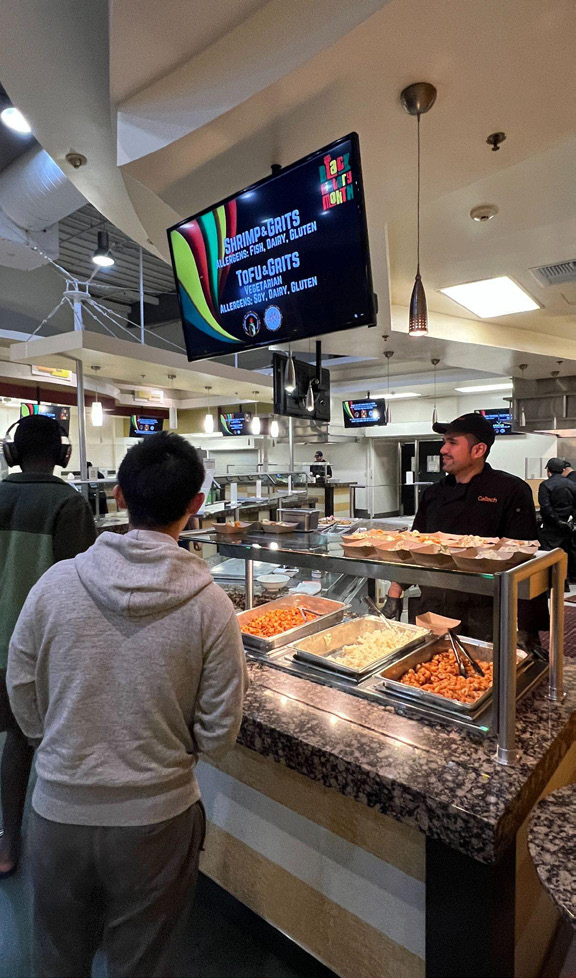 On February 12, CDS celebrated Black History Month in Browne Dining Hall with a wide-ranging menu featuring soyrizo mac ‘n’ cheese, chicken and sausage gumbo (with a tofu option), BBQ jackfruit riblets, fried okra, jerk chicken and yams, shrimp grits (or tofu), chicken and waffles (with a vegetarian option), banana pudding, and biscuits. Themed décor added to the celebratory atmosphere.