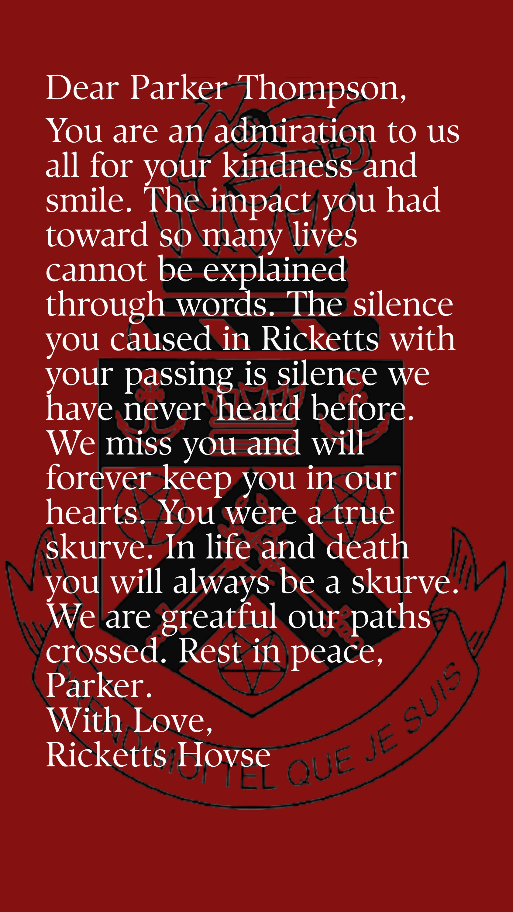 Parker Thompson, a second-year undergraduate studying applied and computational mathematics, Secretary of ASCIT, and a peer advocate, passed away on February 3, 2026. He was 19.