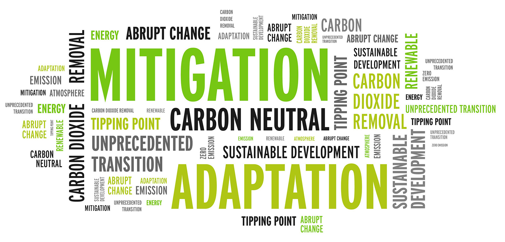 Quick: Define “mitigation” and “adaptation” in the context of climate change.